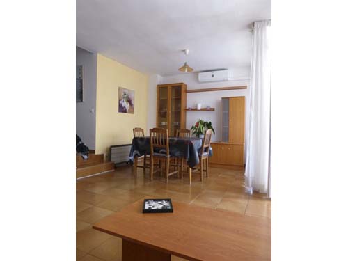 - Saló-menjador molt ampli que té sortida a una terrassa . Amb zona de menjador amb moble aparador, taula i cadires i zona de sala d'estar amb llar de foc, sofà, Tv. Led de 32"